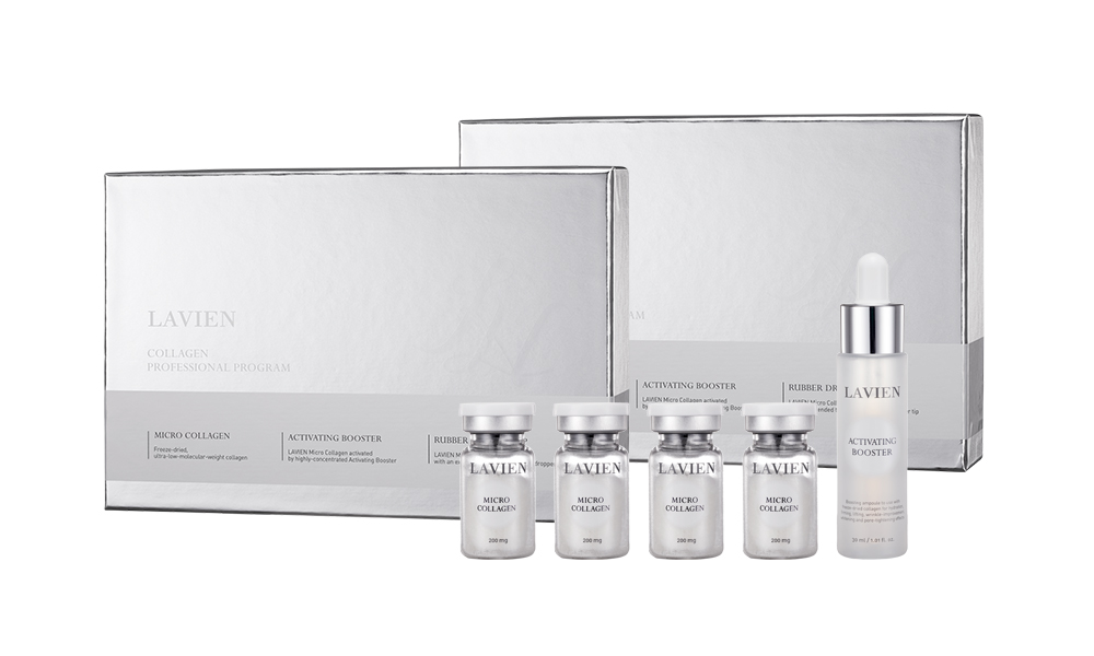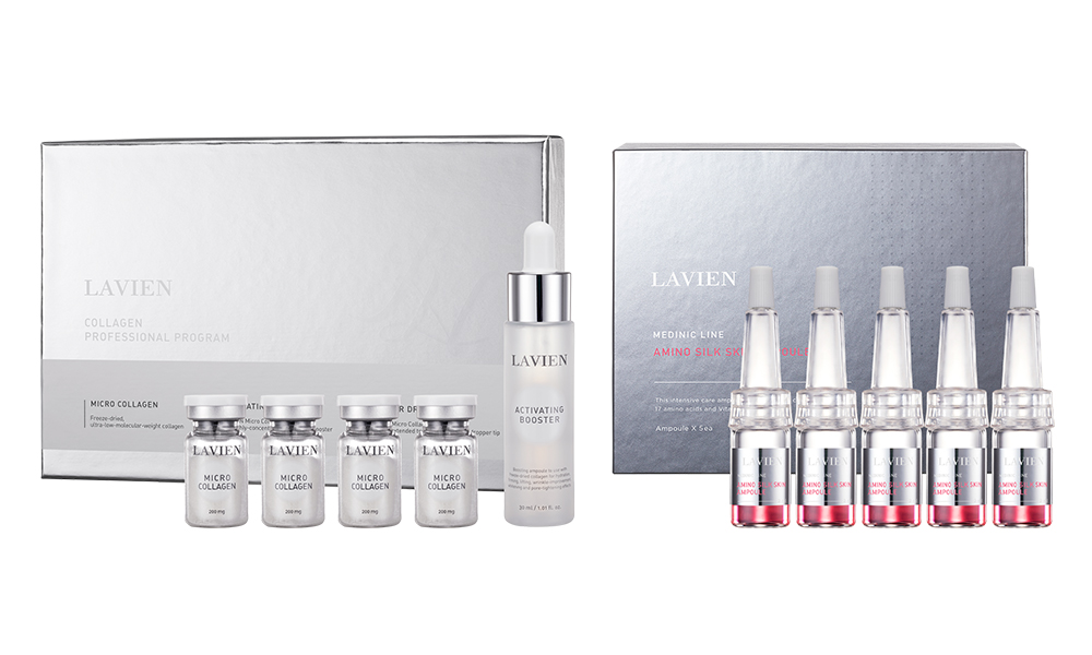 100%フリーズドライコラーゲンを、従来のコラーゲンプロフェッショナルプログラムのアクティベーティングブースターではなく、55種類の成分を配合した高濃縮美容液「アミノシルクスキンアンプル」で溶かし、凝縮されたコラーゲンアミノ酸アンプル、通称“ラヴィアン カクテル”を贅沢に楽しめるJapan Limited!