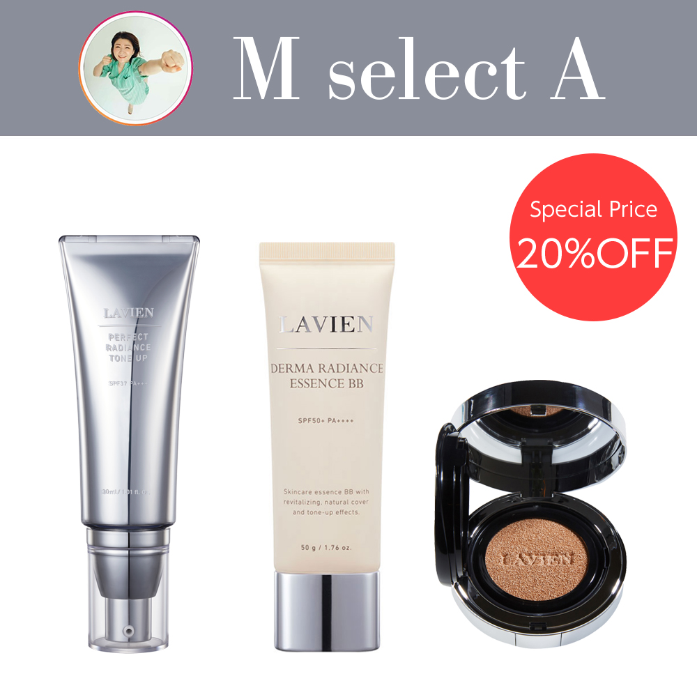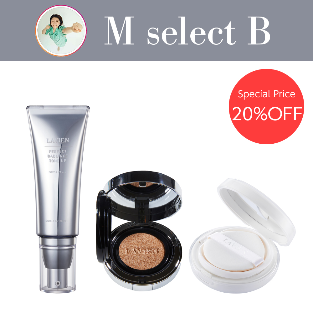 最強メイクアップセットに“艶”を自在に操ることのできるアイテム「クールモイストエッセンスサンクッション」をプラスした、ツヤ肌重視の方にオススメしたいセットです。前回150セット限定の“M Select B”を販売の際に、リクエストの多いセットで、今回セット化致しました。