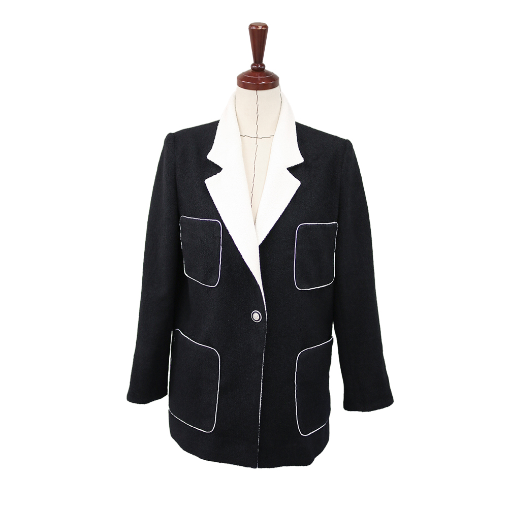立体的でふっくらとしたモノトーンのツィード生地は上品な光沢感とやわらかい滑らかなタッチが魅力。